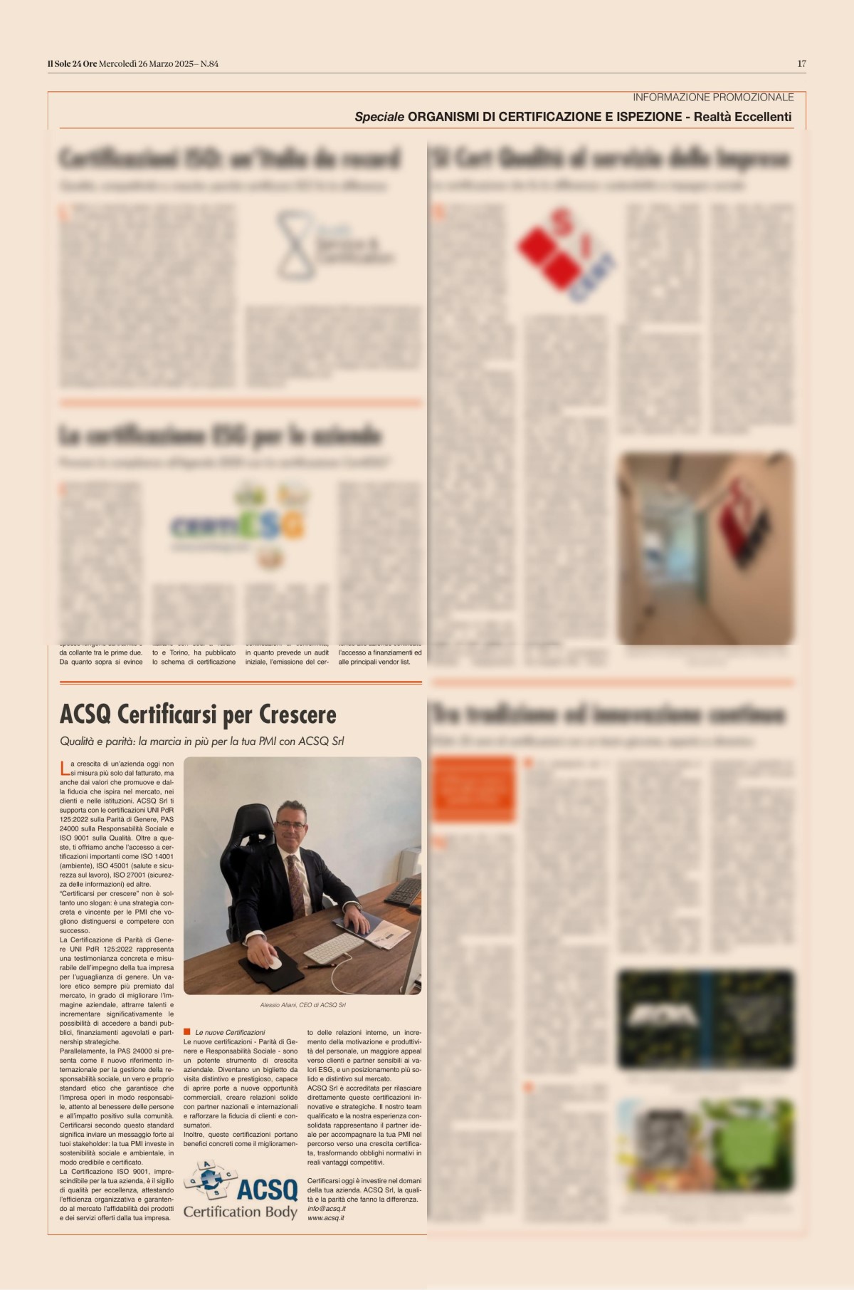 ACSQ Srl is an Italian company that partners with leading European certification bodies to ensure that the issued certificates are recognized both in their respective countries and on an international scale.